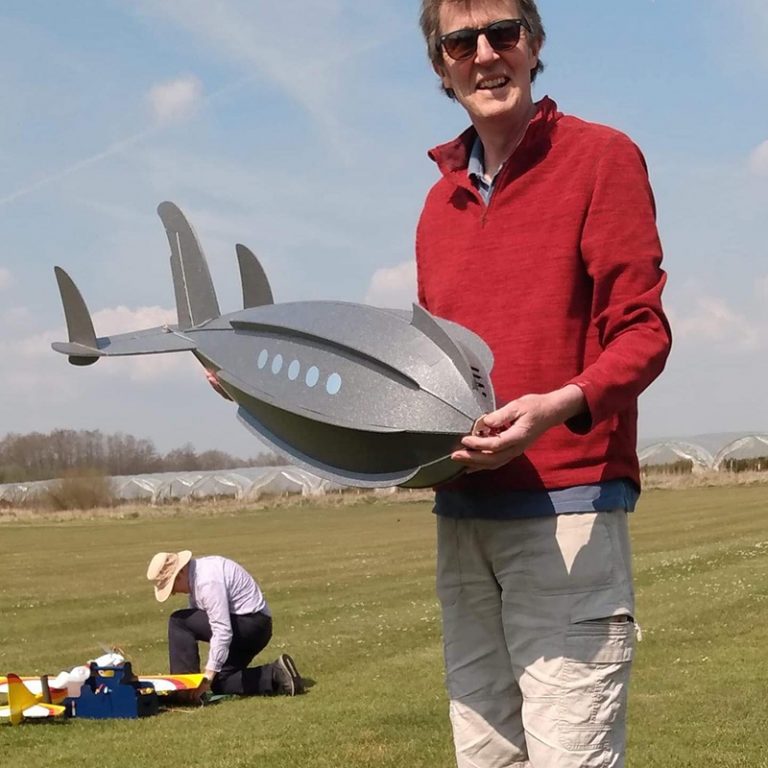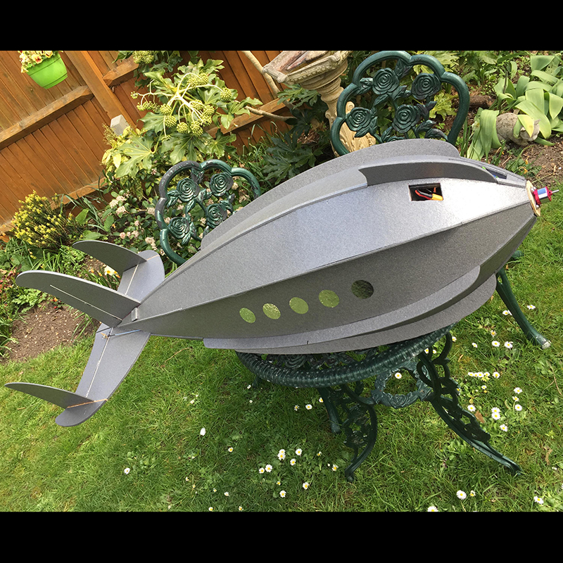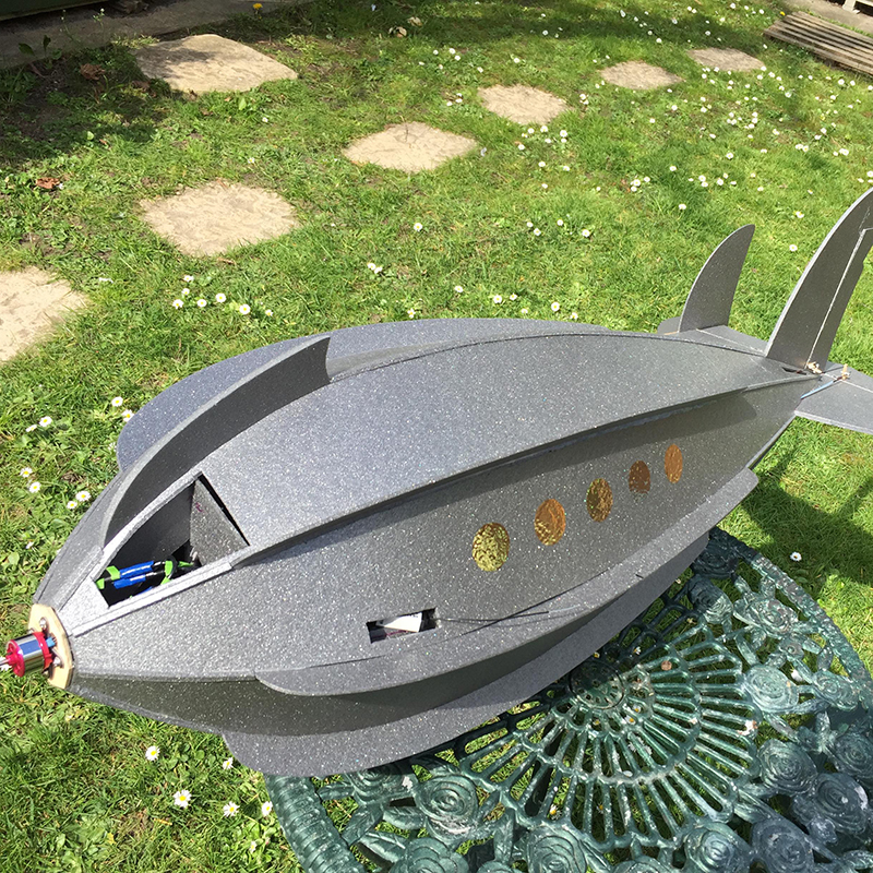 First off is the Martian Spaceship, long story behind this one, I took inspiration from various sources on the internet and decided to design my own, mainly the construction technique. It is totally made out of Depron, a very light rigid foam. Powered by a small electric motor and radio control on the rudder and two elevons (dual mix of elevator and ailerons). It has flown a couple of times, it looks crazy in flight and looks as though it shouldn't do. Don't ask me about the technical aerodynamics, it's out of this world!