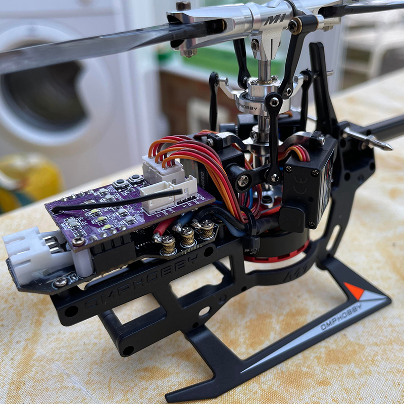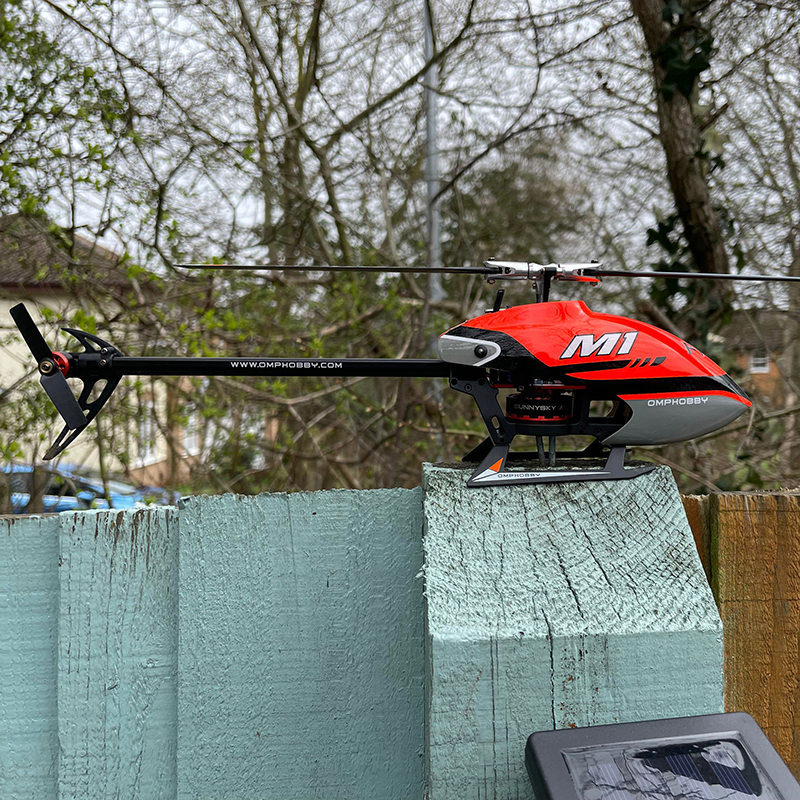 I always said NO helicopters, they are not 'natural' but early 2023 I succumbed and got the OMPHobby M1 helicopter, absolute devil to learn how to fly (gyros turned off of course). It only has a 290mm rotor diameter and weighs just 118g so is very light. Beautifully made with direct drive on main and tail rotors cuts down on wear and tear etc on usual belts and gears, obviously not used here. I think it would be easier to fly if I had a bigger copter with a greater mass but lets see how I get on with this, early days yet.